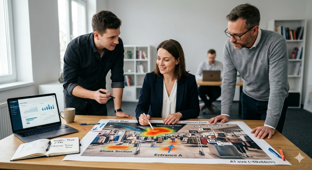 Identificación de las zonas de mayor y menor tráfico dentro de su local para optimizar la exhibición de productos.